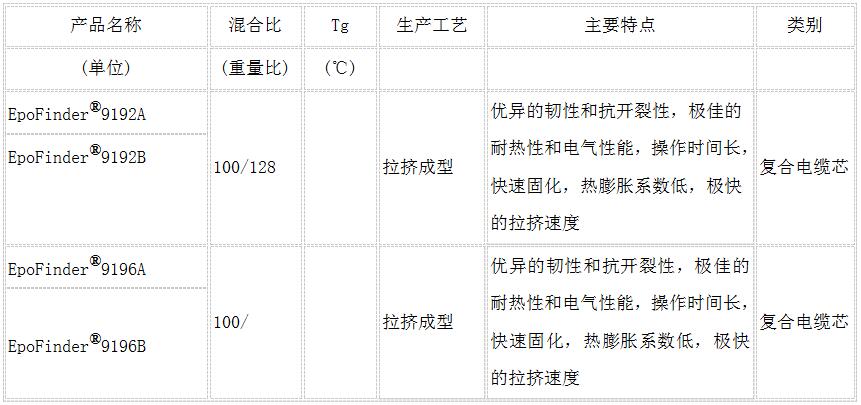 針對(duì)拉擠工藝的環(huán)氧系列材料,100%不含揮發(fā)組分,通過(guò)特有的先進(jìn)技術(shù),同時(shí)達(dá)到了優(yōu)異的韌性和極佳的耐熱性。該系列材料還能很好地滿足高拉擠速度和高Tg的要求。